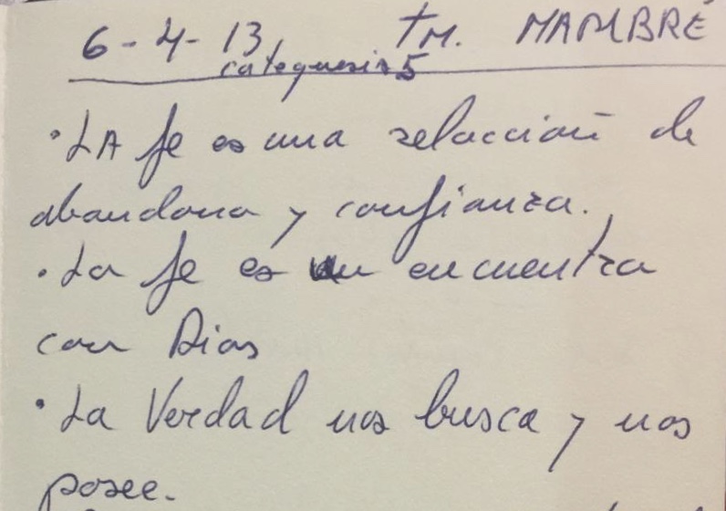 Este mes recogemos las frases escritas por Alberto en una tarjeta, el 6 de abril de 2013 después de una catequesis. Son mensajes importantes para él, que quería vivir con radicalidad y convencimiento. Sobre todo en los momentos difíciles donde las fuerzas flaqueaban o cuando aparentemente la Providencia no ayudaba.