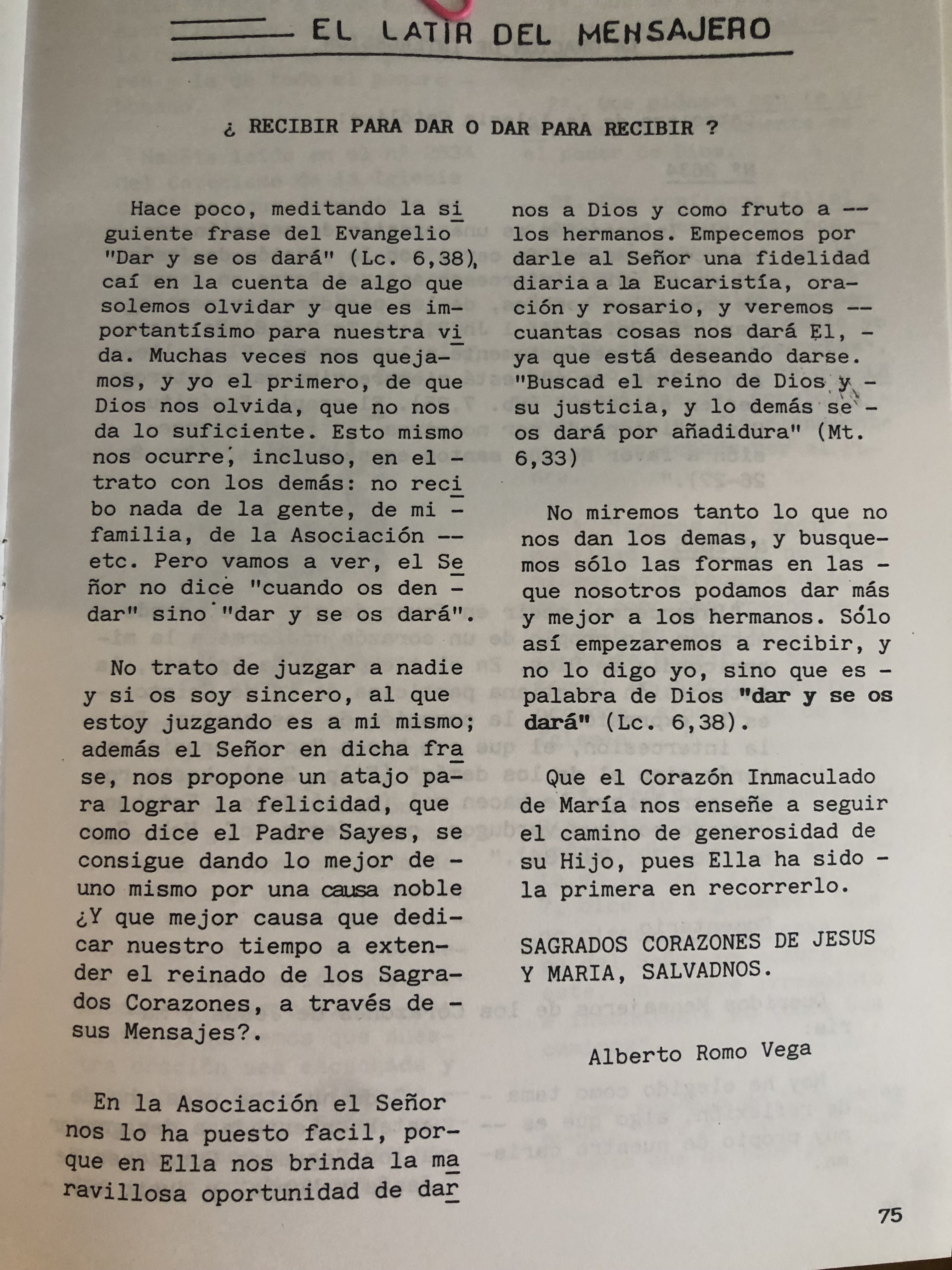 Hoy queremos compartir uno de los escritos que hizo Alberto cuando tenía 24 años, para el boletín de los Mensajeros de los Corazones de Jesús y María.