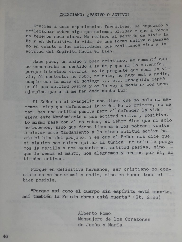 En esta ocasión, compartimos un texto que escribió Alberto cuando tenía unos 26 años, para un boletín de la asociación Mensajeros de los Corazones de Jesús y María, en la que fue Delegado del Grupo de Jóvenes por un tiempo.