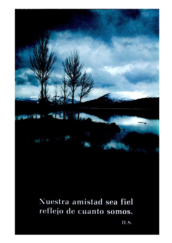 El 17 de septiembre de 1998, Alberto escribió esta tarjeta con un texto de Tadeusz Dajczer, del libro Meditaciones sobre la fe. Era algo que hacía habitualmente, cuando te hacía un regalo: siempre con dedicatoria. Es un libro que solía recomendar, de hecho a su hermana Marta se lo regaló en dos ocasiones y esta tarjeta pertenece a uno de esos regalos.