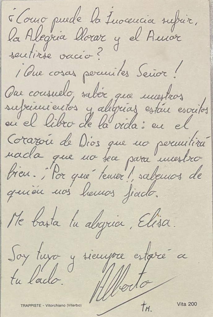 Queremos compartir con vosotros una preciosa postal que Alberto escribió para Elisa: